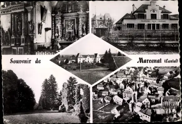 Ak Marcenat Cantal, Panorama, La Gare, L'Eglise