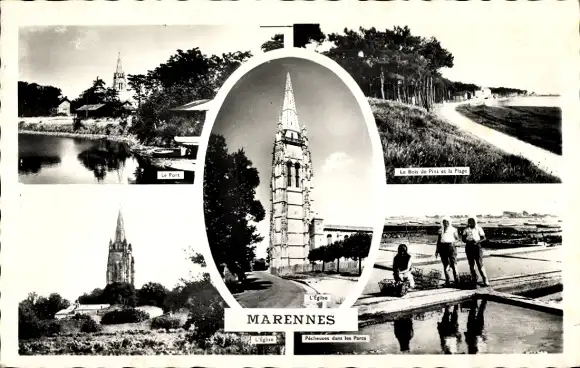 Ak Marennes Charente-Maritime, Kirche, Strand, Hafen