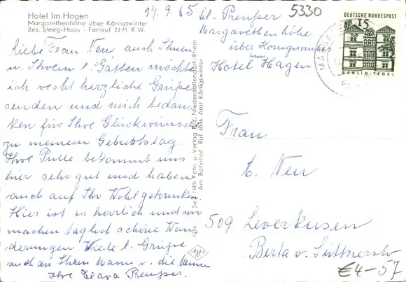 Ak Margarethenhöhe Königswinter am Rhein, Hotel Im Hagen