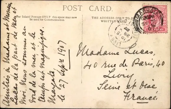 Zustand, siehe Scan, gelaufen, 1907 - ca 14 cm X 9 cm