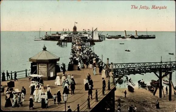 Ak Margate Kent England, The Jetty, Dampfschiff