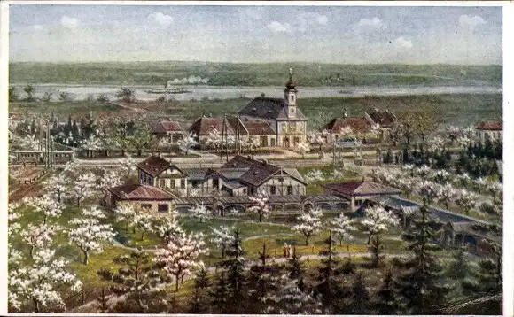 Ak Maria Ellend Niederösterreich, Gesamtansicht, Donau