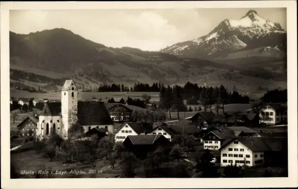 Ak Maria Rain Oy Mittelberg im Allgäu, Ortsansicht mit Gebirge