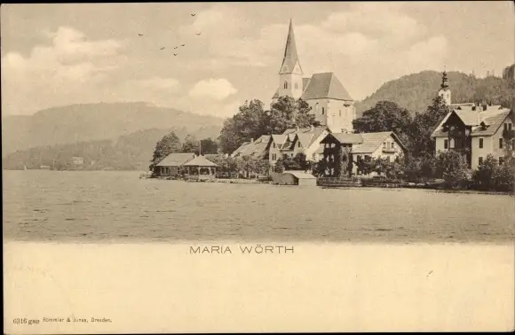 Ak Maria Wörth am Wörthersee Kärnten, Teilansicht mit Kirche