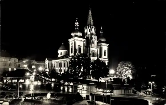 Ak Mariazell Steiermark Österreich, Gnadenkirche bei Nacht