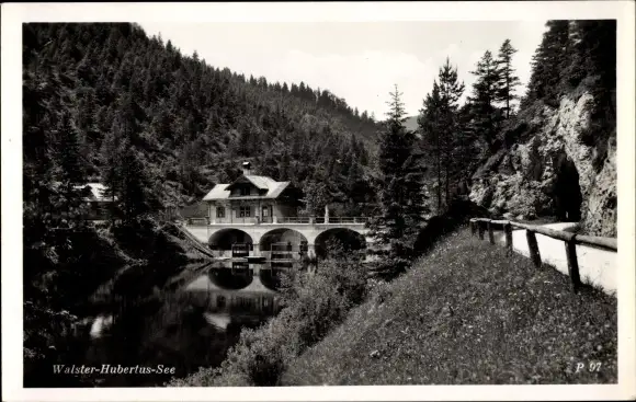 Ak Mariazell Steiermark, Walster Hubertus See, Brücke