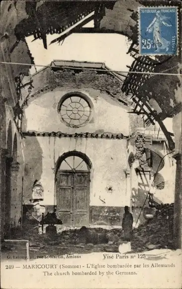Ak Maricourt Somme, L'Eglise Bombardee par les Allemands