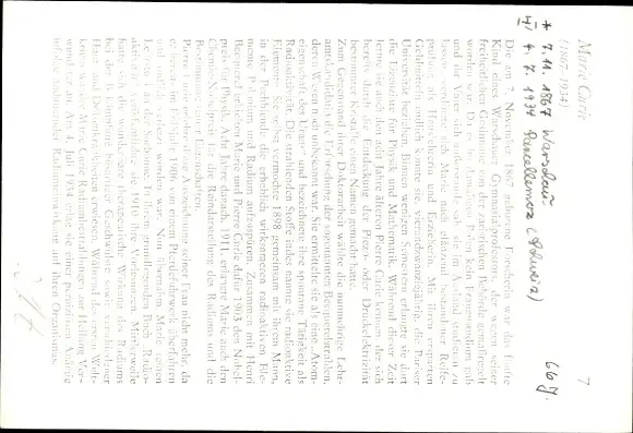 Ak Marie Curie Sklodowska, Physikerin und Chemikerin