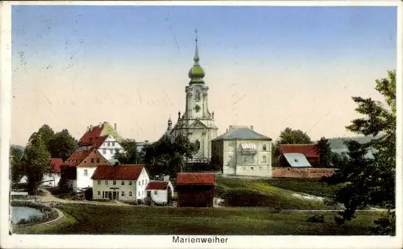 Ak Marienweiher Marktleugast im Frankenwald Bayern, Teilansicht mit Kirche