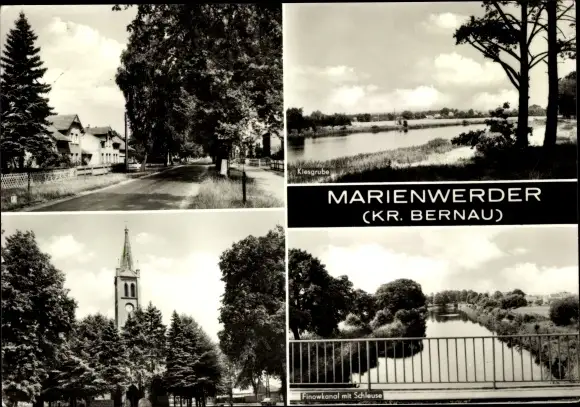 Ak Marienwerder Bernau bei Berlin, Strassenansicht, Finowkanal mit Schleuse
