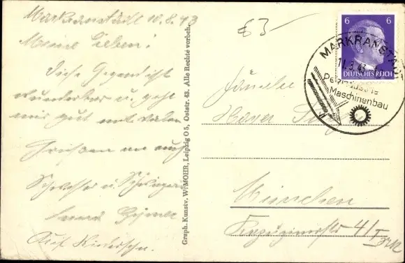 Zustand, siehe Scan, gelaufen, 1943 - ca 14 cm X 9 cm