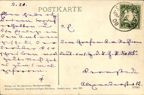 Zustand, siehe Scan, gelaufen, 1908 - ca 9 cm X 14 cm