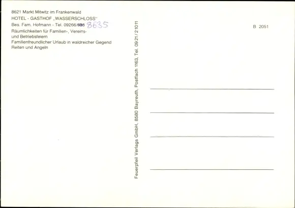 Ak Markt Mitwitz in Oberfranken, Gasthof Wasserschloss