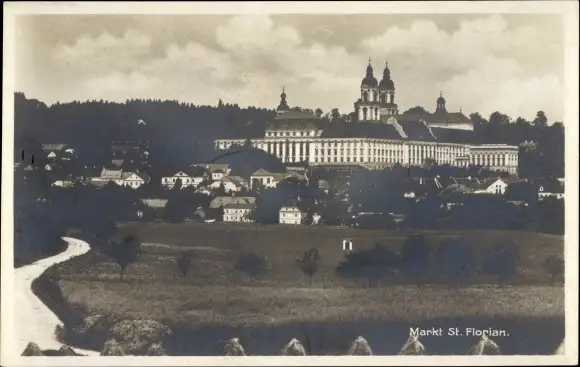 Ak Markt St Florian in Oberösterreich, Blick auf den Ort, Stift