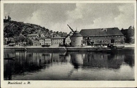 Ak Marktbreit am Main Unterfranken, Uferansicht, Kran