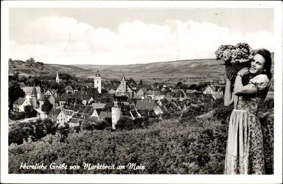 Ak Marktbreit in Unterfranken, Gesamtansicht, Weintrauben