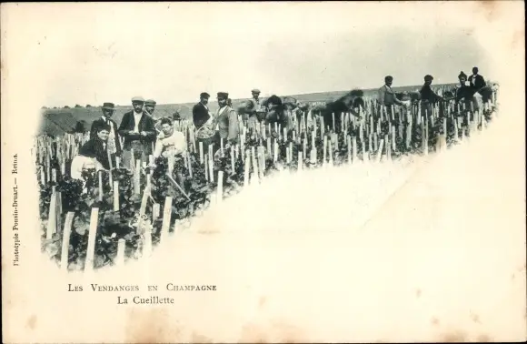 Ak Marne, Weinlese in der Champagne, Pflücken