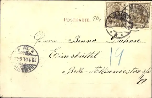 Zustand, siehe Scan, gelaufen, 1904 - ca 14 cm X 9 cm
