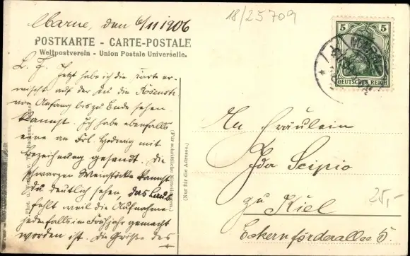 Zustand, siehe Scan, gelaufen, 1906 - ca 14 cm X 9 cm