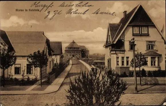Ak Marne in Holstein Dithmarschen, Straßenpartie im Ort