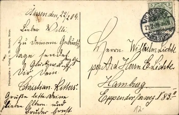 Zustand, siehe Scan, gelaufen, 1909 - ca 14 cm X 9 cm