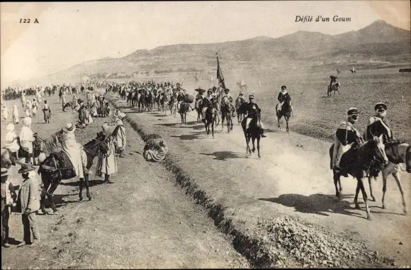 Ak Marokko, Defile d'un Goum, Krieger zu Pferden