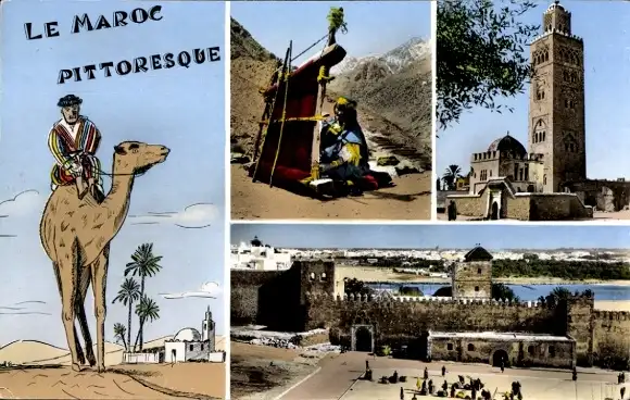 Ak Marokko, Kamelreiter, Turm, Mauer, Weber am Webstuhl