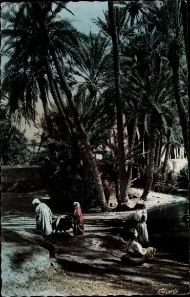 Ak Marokko, Scenes et Types, Au bord de l'oued dans l'oasis