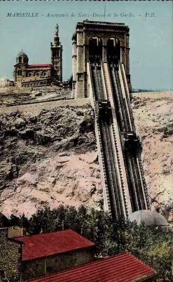 Ak Marseille Bouches du Rhône, Ascenseurs de Notre-Dame de la Garde