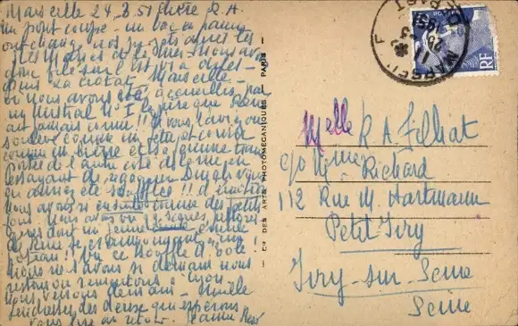 Zustand, siehe Scan, gelaufen, 1951 - ca 14 cm X 9 cm