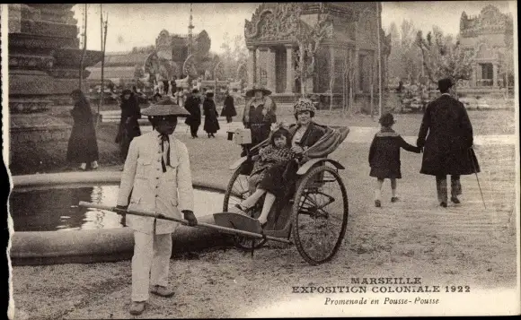 Ak Marseille Bouches du Rhône, Exposition Coloniale, Promenade en Pousse Pousse, 1922