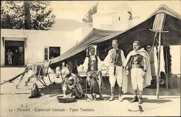 Ak Marseille Bouches du Rhône, Exposition Coloniale, Types Tunisiens