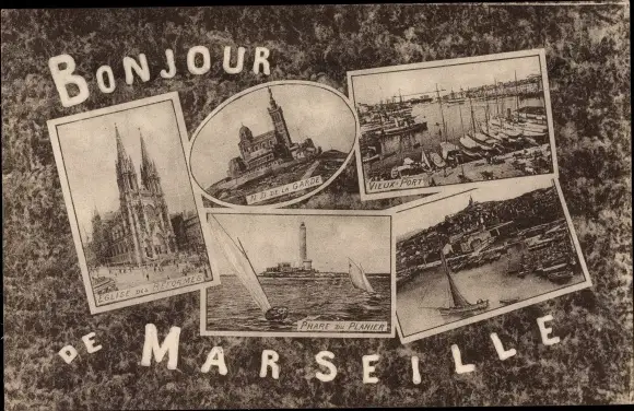 Ak Marseille Bouches du Rhône, Notre Dame de la Garde, Phare, Vieux Port