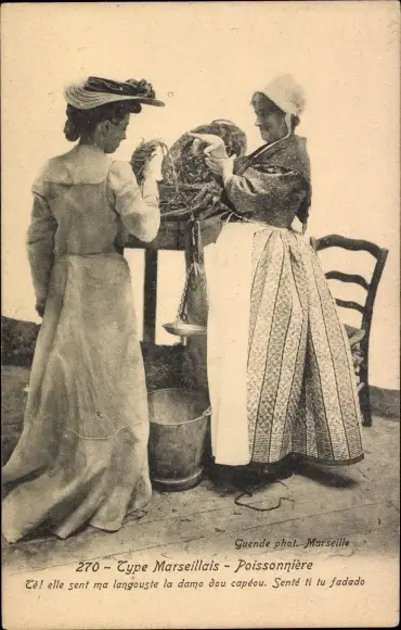 Ak Marseille Bouches du Rhône, Type Marseillais, Poissonniere, zwei Frauen
