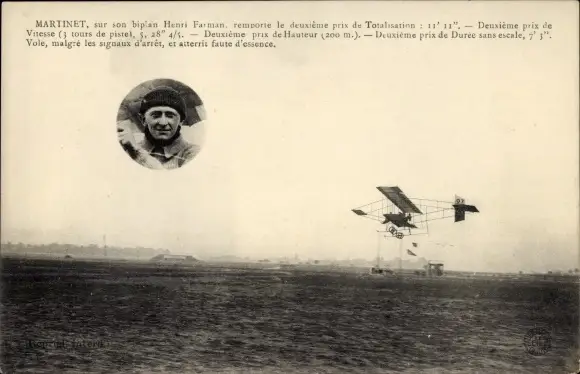 Ak Martinet sur son Biplan H. Farman, Flugpionier, Pilot, Flugzeug