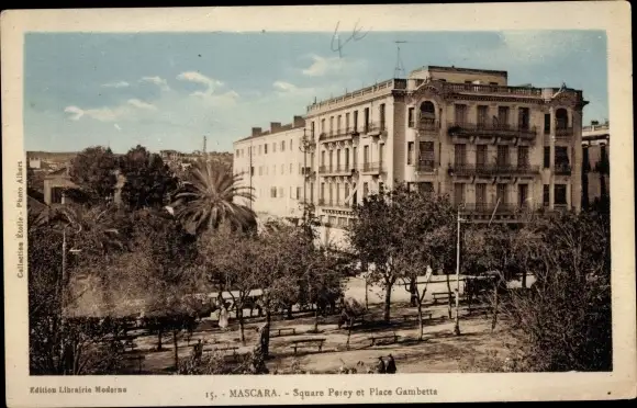 Ak Mascara Algerien, Square Perey et Place Gambetta