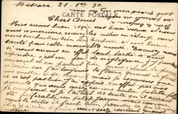 ungelaufen, datiert 1930, Rückseite beschrieben, Knickspur oben, sonst guter Zustand