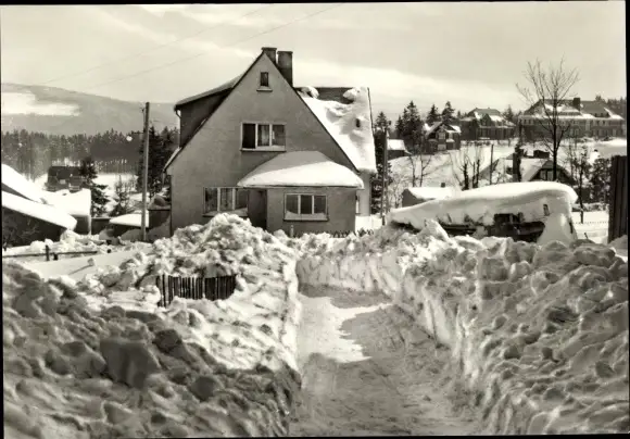 Ak Masserberg in Thüringen, Straßenpartie, Winter