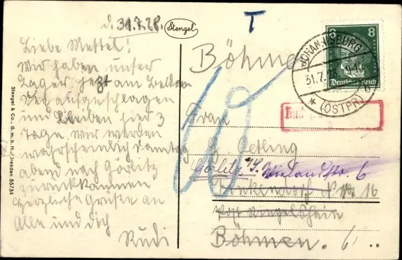 Zustand, siehe Scan, gelaufen, 1928 - ca 14 cm X 9 cm