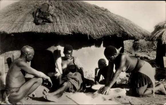 Ak Matabele natives at home, barbusige Frauen