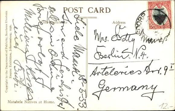 Zustand, siehe Scan, gelaufen, 1933 - ca 14 cm X 9 cm