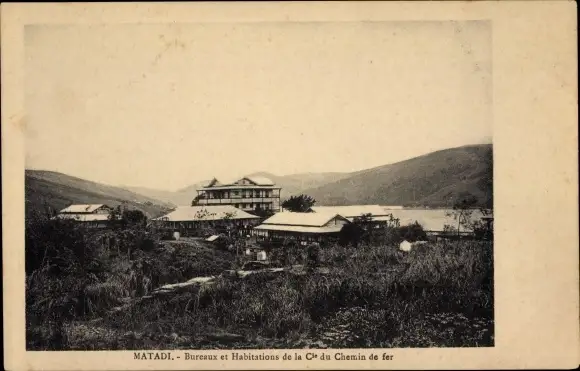 Ak Matadi DR Kongo Zaire, Büros und Wohnhäuser der Eisenbahn-Gesellschaft