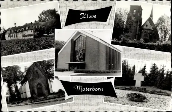 Ak Materborn Kleve am Niederrhein, Kirche, Kapelle, Ehrenmal