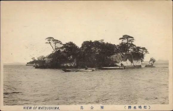 Ak Matsushima Präf. Miyagi Japan, Blick zur Insel, Boote