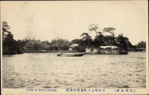Ak Matsushima Präf. Miyagi Japan, Wasseransicht, Insel, Gebäude