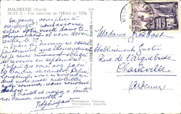 Ak Maubeuge Nord, Fliegeraufnahme, Rathaus