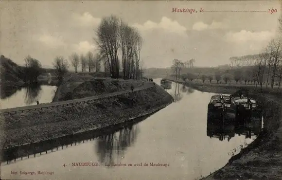 Ak Maubeuge Nord, Sambre flussabwärts von Maubeuge