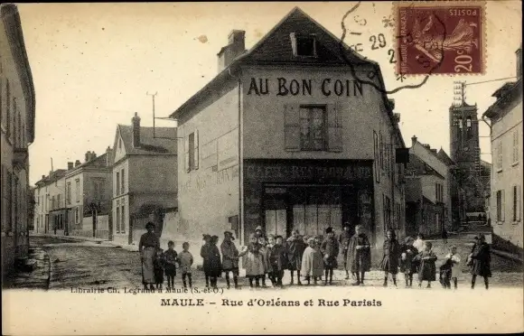 Ak Maule Yvelines, Rue d'Orleans et Rue Parisis, Café Au Bon Coin