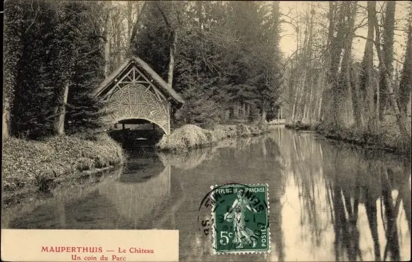 Ak Mauperthuis Seine et Marne, Le Château, Un coin du Parc
