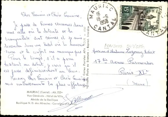 Ak Mauriac Cantal, Stadtbilder, Panorama, Kirche